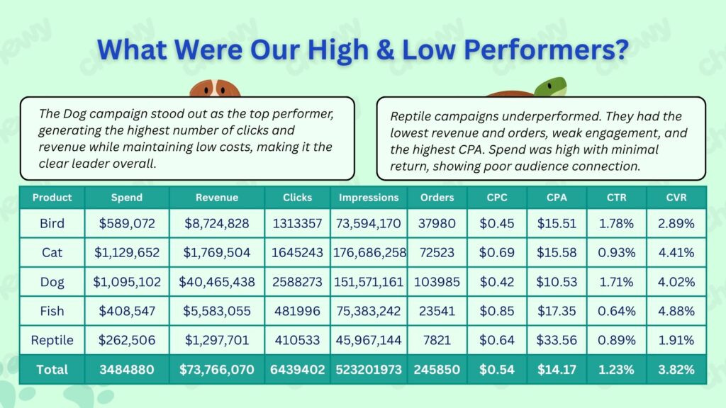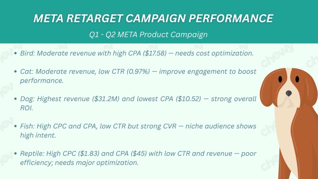 My team and I developed a comprehensive performance report and presentation highlighting key insights from Chewy’s Q1 and Q2 marketing performance. We conducted in-depth data analysis, verified data accuracy, and transformed our findings into a clear, easy-to-follow report and slide deck. The final presentation showcased channel trends, campaign performance, and actionable recommendations, which we presented to our COOP cohort for feedback and practice.